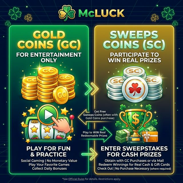Gold Coins vs Sweeps Coins, legal framework, redemption rules and why McLuck is free to play in the USA, Canada and Australia.